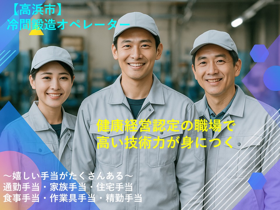 【高浜市】冷間鍛造オペレーター/残業月10H程度/高い技術力が身につく/健康経営優良法人認定/食事手...