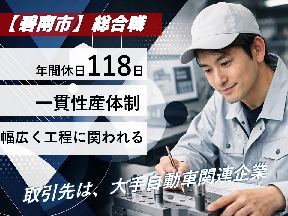 【碧南市】総合職(設計~製造加工・溶接~組付けまで)/一貫生産体制/安定した自動車部品製造/年間休日...