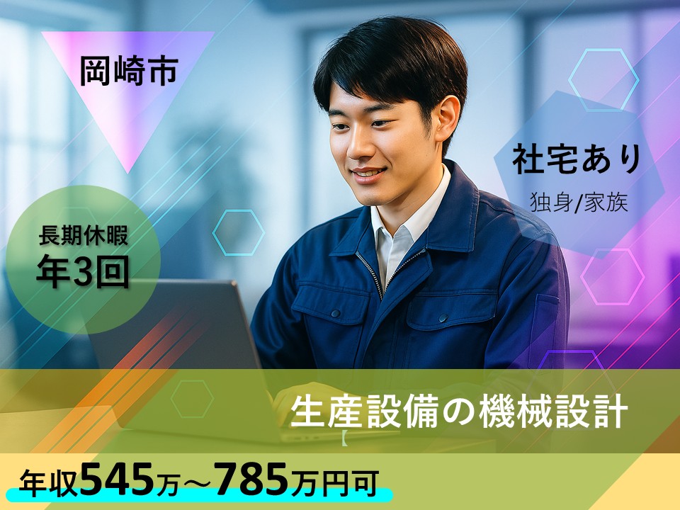 【岡崎市】生産設備の機械設計/年収545万~785万円可/年休120日×土日休み/大手自動車メーカー...