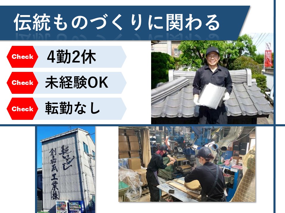 江戸時代から続く三州瓦の産地・西三河に根差し、高級建材「いぶし瓦」を製造。伝統の工程をいち早く機械化し、効率化と働きやすさを両立してきました。時代に合わせて進化しつつ、伝統の品質を守り続けています。